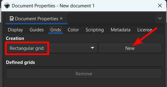 Once you have selected the grid type from the drop-down menu, click New to add the grid guidelines to the document.