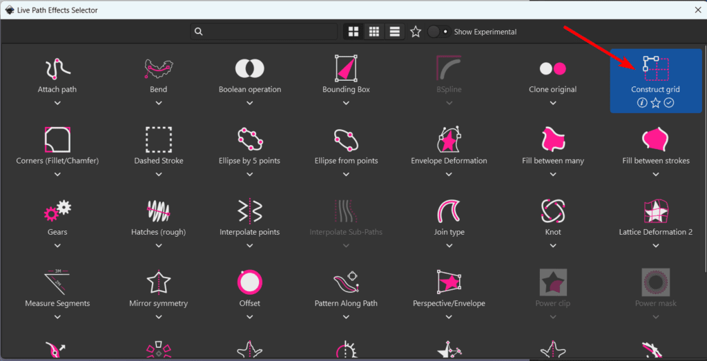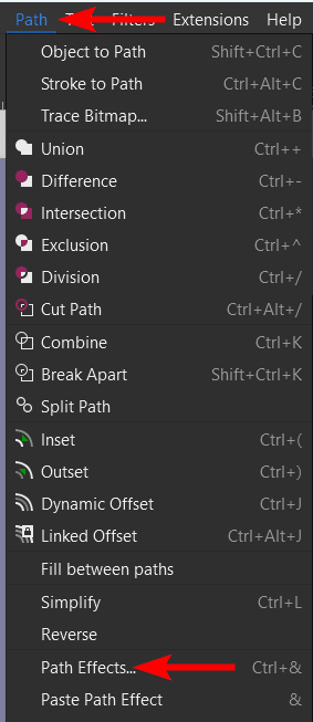 Click on the Add Path Effects button, which is the plus sign at the bottom of the Path Effects settings panel to the right of the workspace.