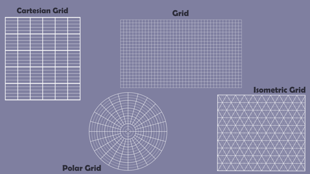 You can select the type of grid you want to add to your project from the menu path. You can choose a cartesian, standard, isometric, or polar grid. Each grid offers a different style with customization options.