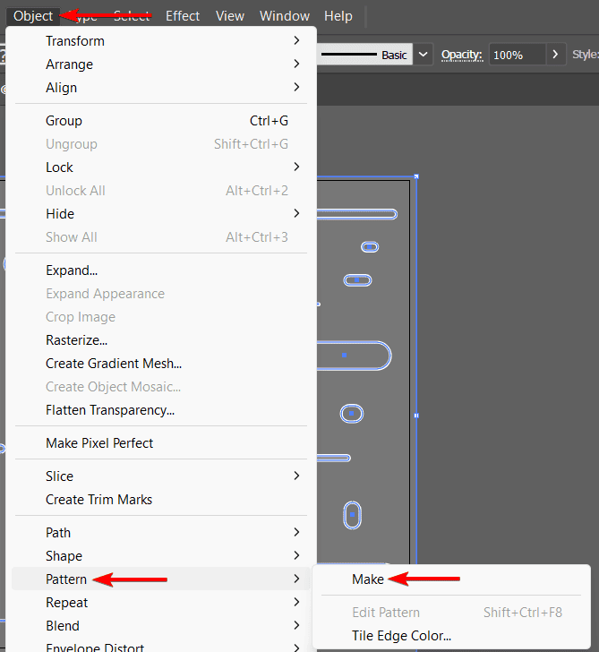 Step 2: Make the Pattern by Going to Object > Pattern > Make