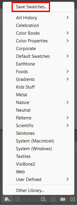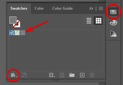 You need to save the swatch to ensure you can use the pattern swatch within other projects. The easiest way to do this is to open the Swatches panel and select the swatch you want to save. Then, click on the Swatch Libraries menu icon.