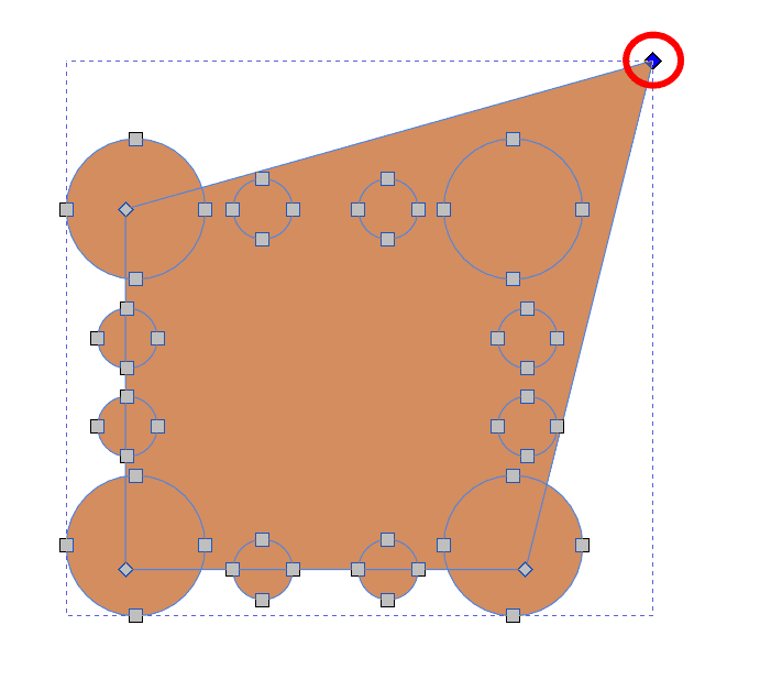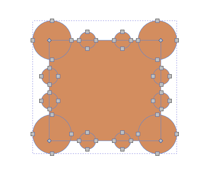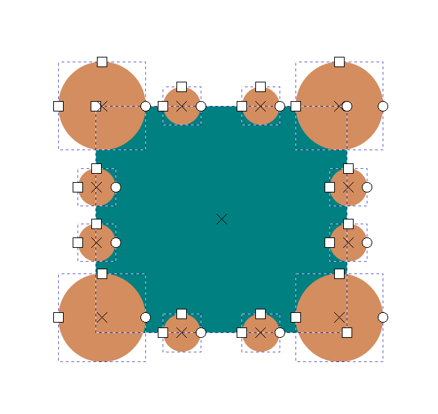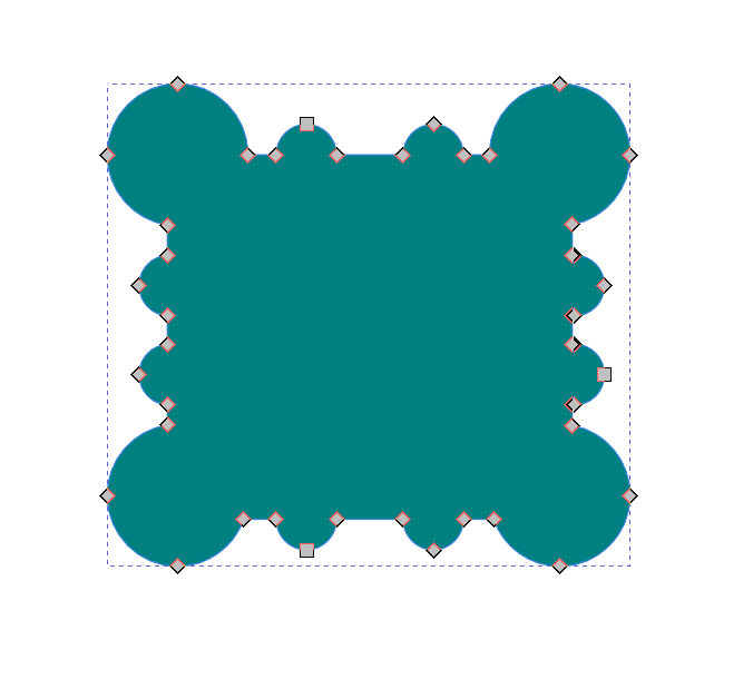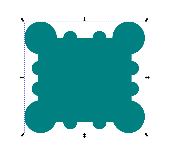 Then, click on the new shape. You will see the nodes surrounding the shape's outline, and the circles are no longer separate shapes. The nodes are added where the shapes overlap with each other.