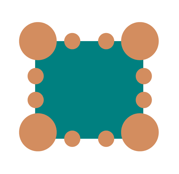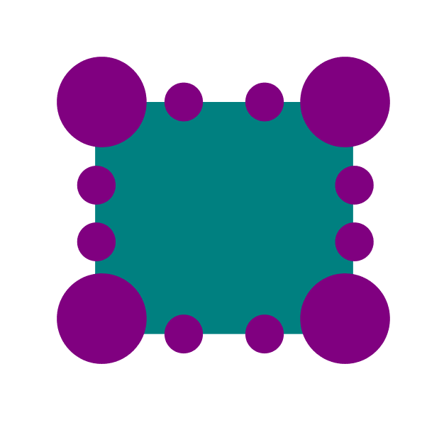 To group objects, first, add the shapes to your page. I will use the same design of a few circles around a rectangle shape throughout all three methods to show the different results.