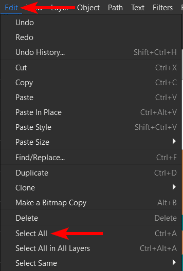 To use the Union method, select all the objects you want to combine. You can use any of the selection methods mentioned in the first option. However, if you want to select all the objects on the page, the easiest way is to go to Edit > Select All.