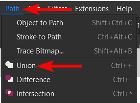 Then, to use the Union method, go to Path > Union or use the shortcut Control + + on Windows or Command + + on Mac.