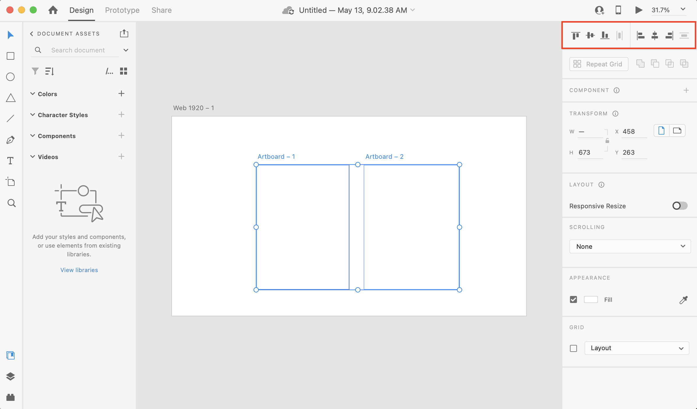 - Select the artboards you wish to organize by holding Shift and Clicking