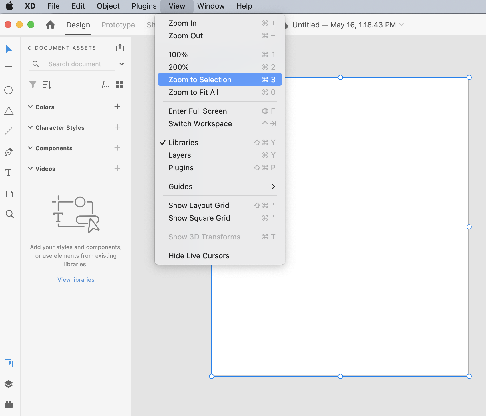 - In the Top Menu, click View and select Zoom to Selection