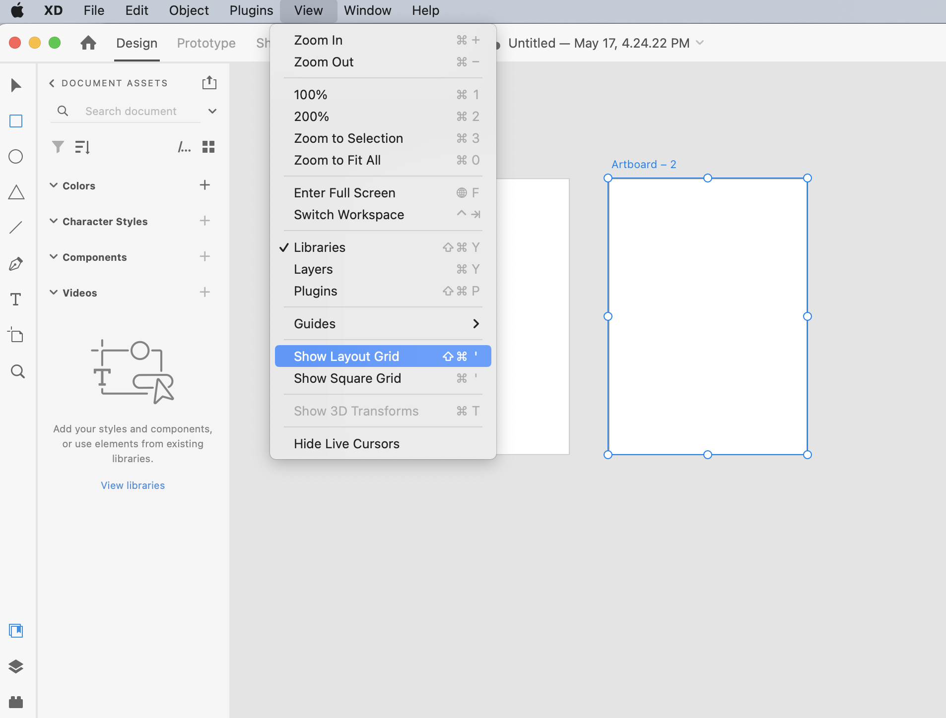 - Select Show Layout Grid