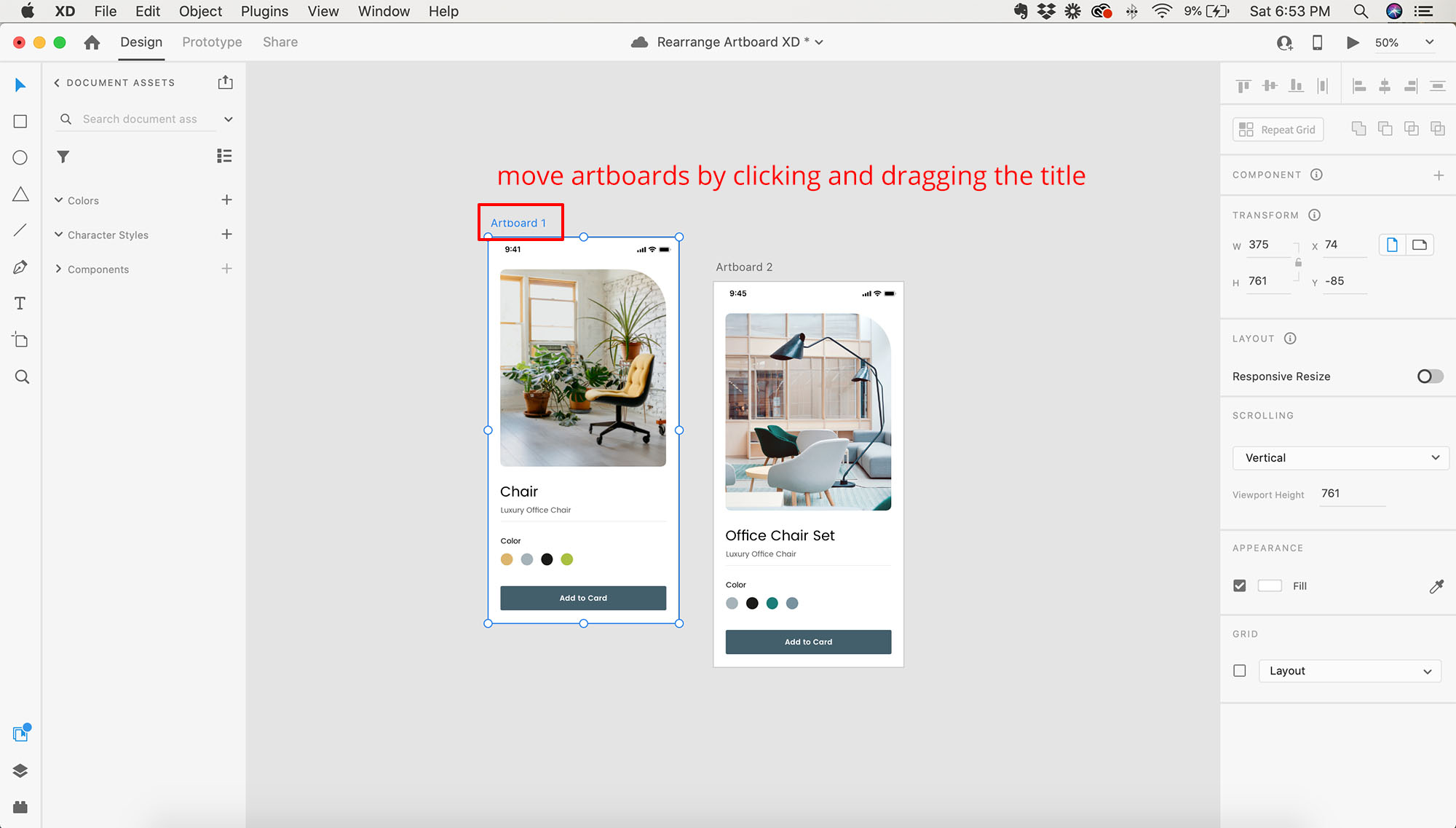 If you are trying to organize a large design project in XD, knowing how to quickly move artboards around in the canvas area can be really helpful. Fortunately, rearranging artboards is really simple!