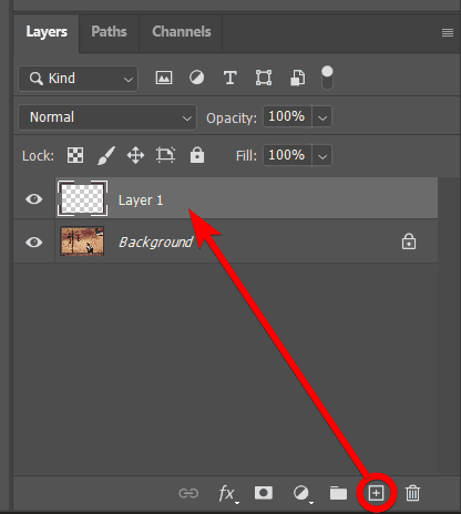 Then, add a new layer by clicking on the Add new layer icon at the bottom of the Layers Panel. This enables you to work non-destructively.