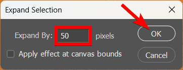 You can then input a pixel value to expand the selection depending on how wide you want to expand it. I will add 50 pixels to the box. Click OK to confirm the expansion.
