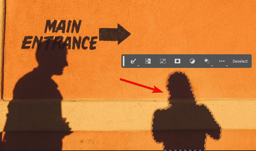 To use this method, you must first select the shadow using a selection tool. You can use any of the selection tools based on your image. For instance, select the Object Selection Tool (W) from the toolbar.