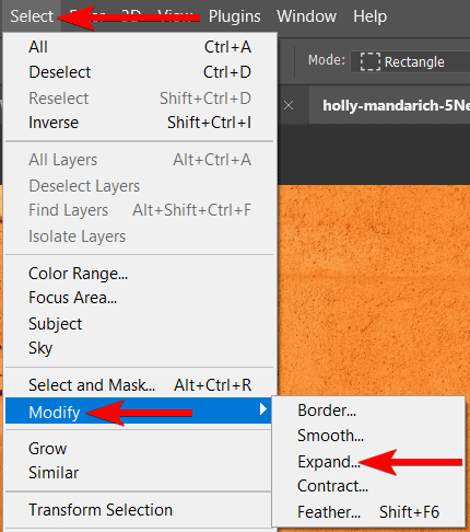 You should now expand the selection to include some of the background (much like the remove tool method) to ensure a clean removal. To extend the selection, go to Select > Modify > Expand.