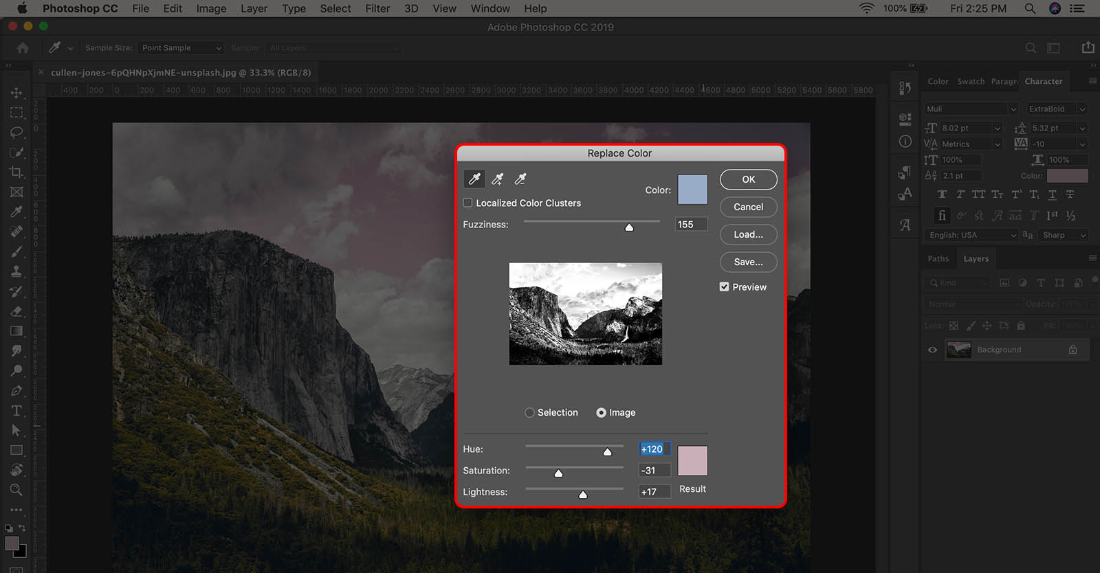 - Fine-tune the final results using the Fuzziness, Hue, Saturation, and Lightness sliders (if you don’t see any changes make sure the “Preview” option is checked)