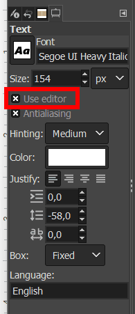However, to reduce the blurriness, set the Direction to Normal (Forward) and the Interpolation to Cubic in the Tool Options Docker before rotating the text.