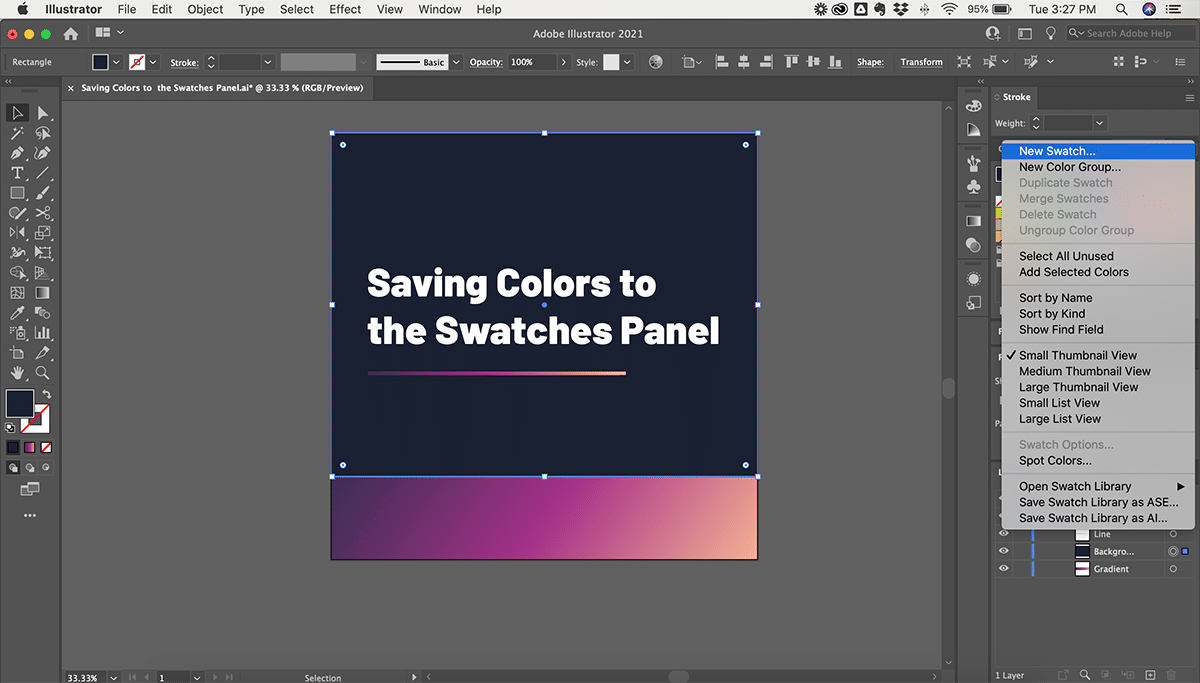 - From the hamburger menu at the top-right of the Swatches panel, choose New Swatch