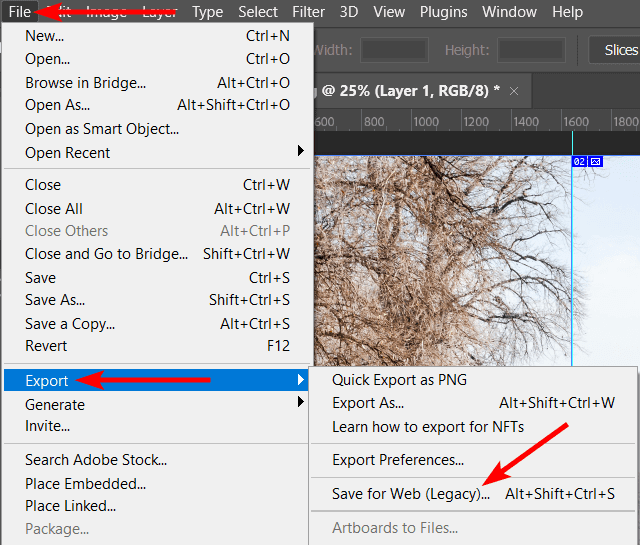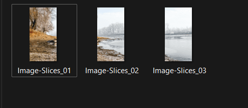 The Slice Tool is found under the Crop Tool and works by splitting the photo into pieces without actually cropping the image. The result is simple lines that determine where the picture is split, and only during export are the segments divided and saved as separate files.