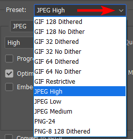 Use the Preset drop-down menu to select the file type you want to save the image as.