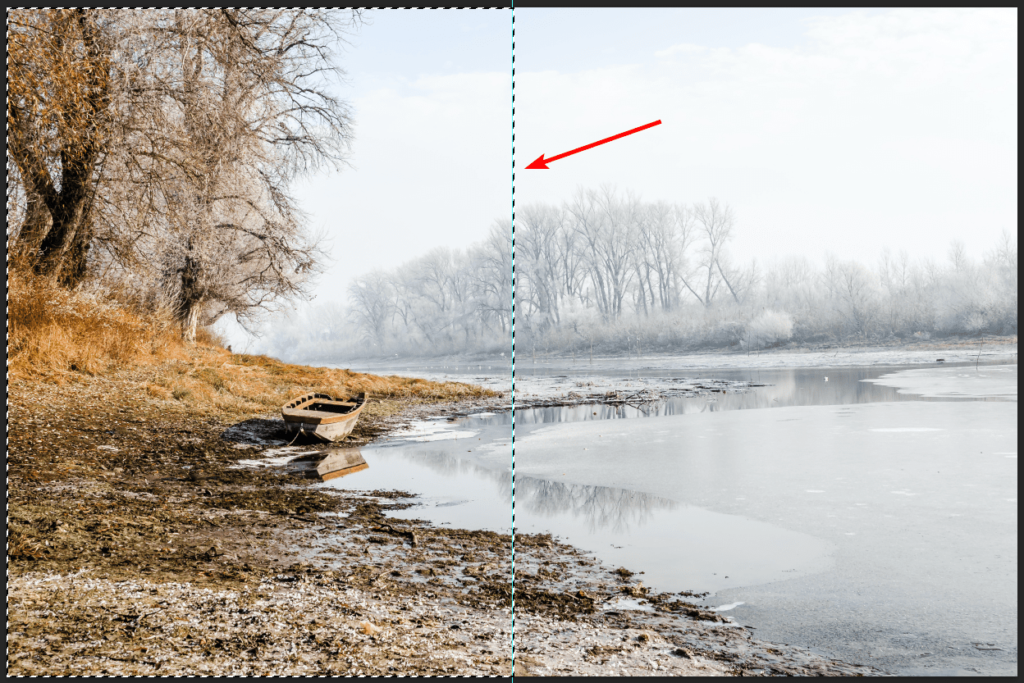 If you don’t want to cut the image but instead edit the half, you can skip the step above and simply add any edits you wish to, and they will only appear on the half you have selected.