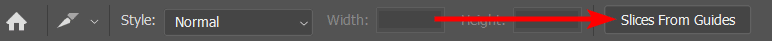 When you have selected the tool, there are a few settings you can change in the bar at the top, known as the Options Bar. All you need to focus on is the button that says Slices From Guides. Click this button to turn the guides you created into slices.