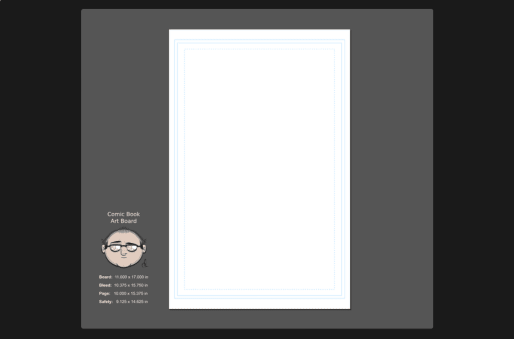 This template features an 11 x 17-inch blank comic book canvas with the standard comic margins included. Use it to create and design comic book scenes easily.