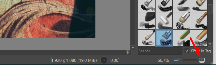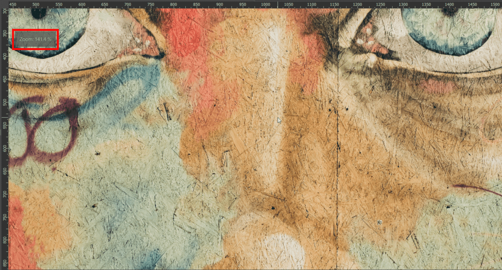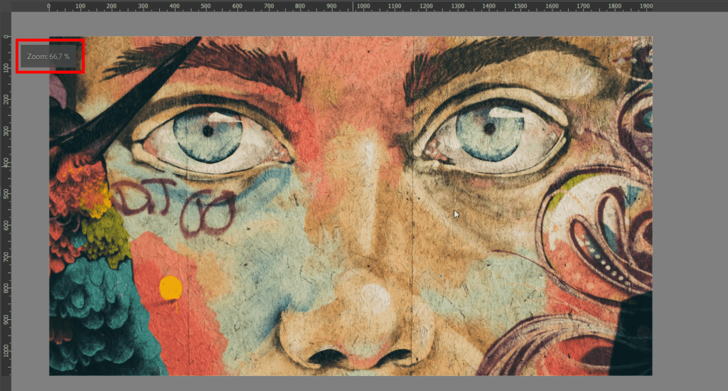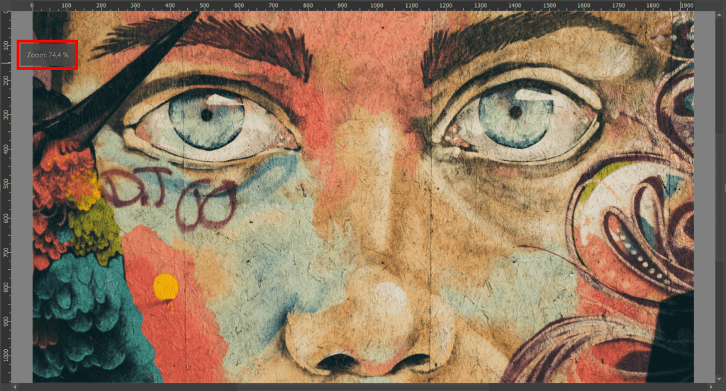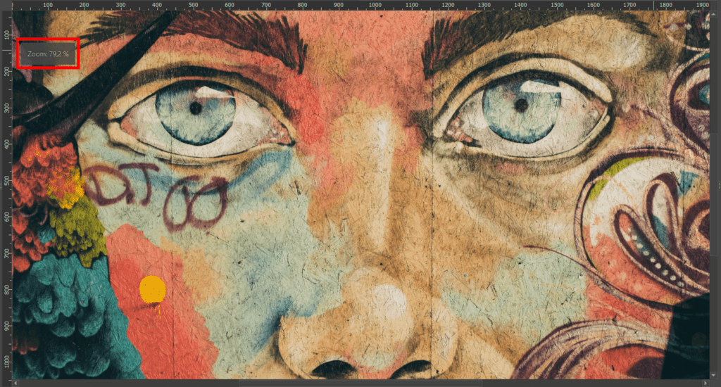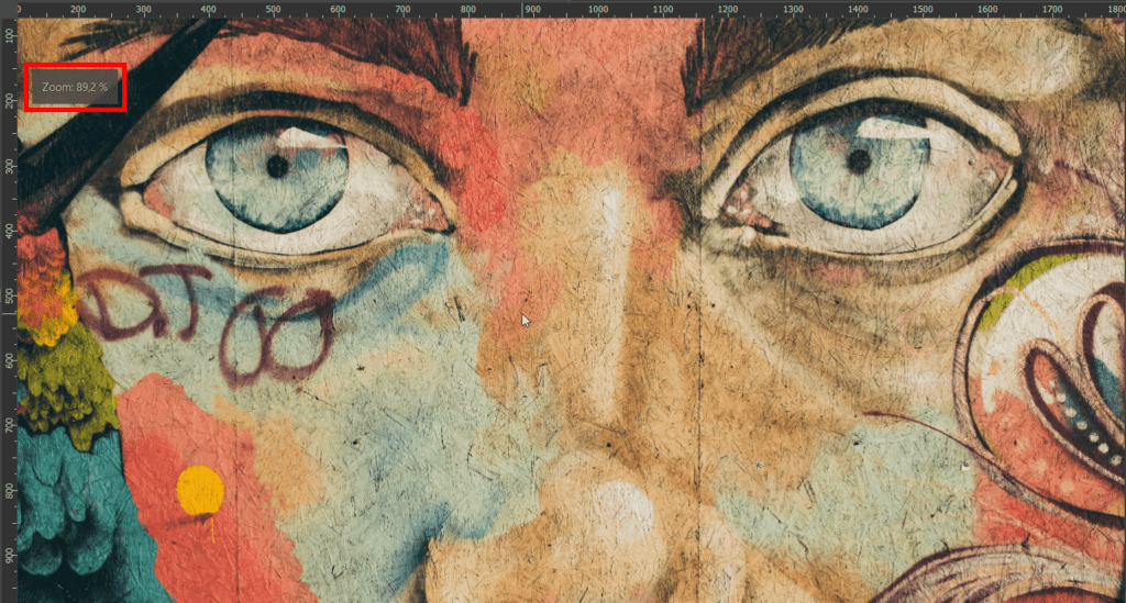 You can also use the zoom slider at the bottom right of the workspace. Drag the slider to the right to zoom in on the image. You will also see the zoom percentage next to the slider.
