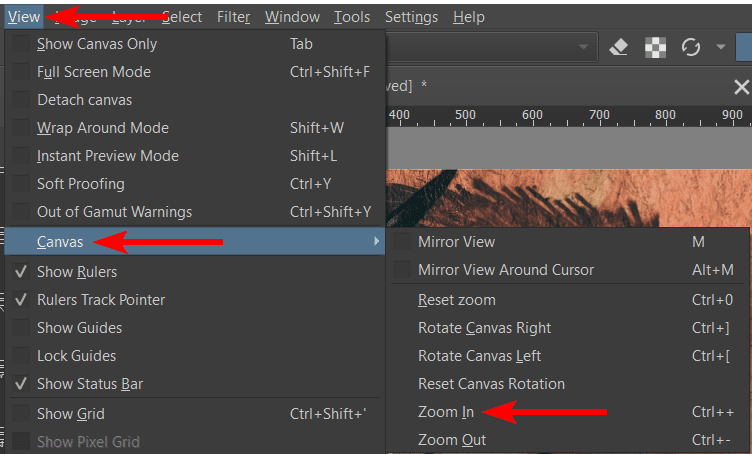 To zoom in on Krita, use one of the following methods that suit your workflow. The fastest way to zoom in is by using the shortcut, the + (plus key), on your keyboard.