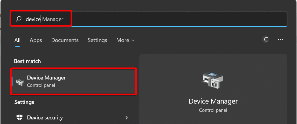 In some cases, you may need to update your Graphic Card Drivers or switch to a different Graphics card. First, check which driver your system is using by opening the Search function and typing in Device Manager.