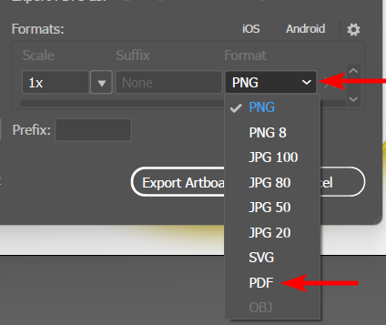 - Click Export Artboard at the bottom