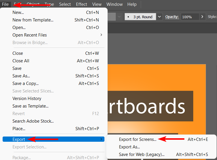 - Go to File > Export > Export for Screens