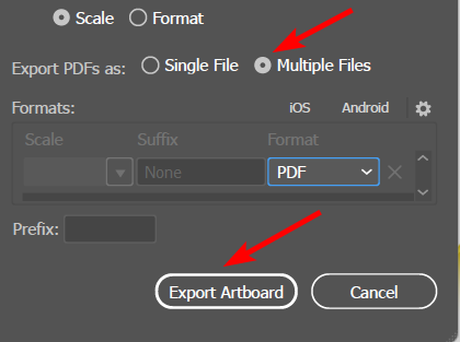 Then, check the circle next to Multiple Files and click Export Artboard.