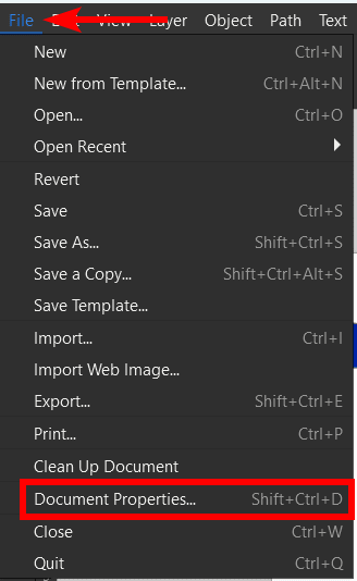 You can change various settings in the Document Properties window, such as the document size and orientation, and of course, add the transparency guide, which is the checkerboard pattern.