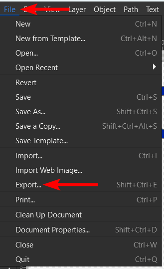 Once you are ready to save the project, go to File > Export or use the shortcut Shift + Control + E on Windows or Shift + Command + E on Mac.