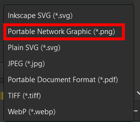 Set the file type to Portable Network Graphic (*.png) if it isn’t already set to that. You can open the list and select it from the options.