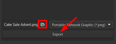 Then, click on the folder icon to the left of the file type to set the save location and name, then click Export to save your project as a PNG.