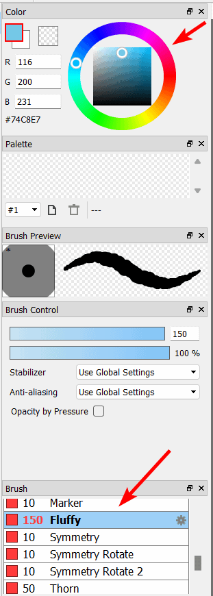 Then, select the brush type and color, and adjust the other brush settings in the left-hand panel.
