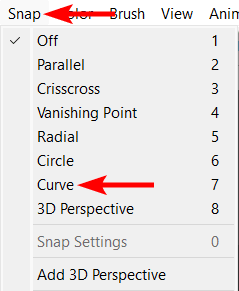 - Turn on the Curve Snap by going to Snap > Curve